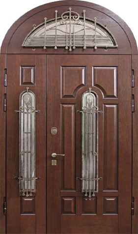 Двухстворчатая арочная дверь со стеклом в частный дом №14