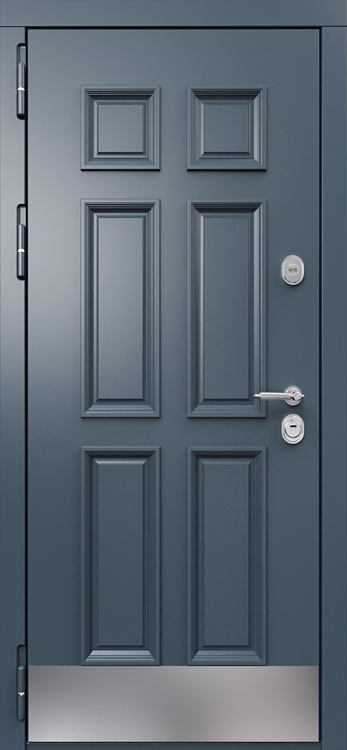 Дверь стальная МДФ эмаль №563 — это удачное сочетание надежной металлической основы и аккуратной декоративной отделки. Каркас из профильной трубы и стальной лист толщиной 2 мм обеспечивают прочность и устойчивость к взлому, а ребра жесткости повышают общий ресурс эксплуатации. Важной особенностью модели является наличие терморазрыва в коробке и полотне: конструкция эффективно препятствует промерзанию зимой, исключает появление конденсата и сохраняет тепло в помещении. Панели МДФ с ПВХ-покрытием, использованные с обеих сторон, защищены от влаги и мелких механических повреждений, благодаря чему дверь долго сохраняет привлекательный внешний вид. Два контура резинового уплотнителя дополнительно усиливают защиту от сквозняков и уличного шума. Такая дверь органично подходит для частных домов, квартир и офисов, сочетая в себе надежность стали и практичность современной отделки. Дверь стальная МДФ эмаль №563 от производителя: быстрое изготовление и монтаж в Белозерском, индивидуальные размеры, широкий выбор материалов и фурнитуры, официальная гарантия до 10 лет.