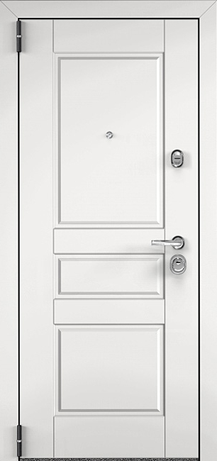 Белая металлическая дверь входная для дома №33 выделяется своим свежим и современным обликом. Универсальный белый цвет делает её уместной как в частном коттедже, так и в квартире или офисе, визуально добавляя простора и подчеркивая аккуратность фасада или интерьера. Конструкция двери основана на стальном листе толщиной 2 мм и усилена профильными трубами, что гарантирует надежность и устойчивость к нагрузкам. Важная особенность модели — наличие терморазрыва в полотне и коробке: благодаря этому дверь не промерзает в зимний период, исключается конденсат и сохраняется комфорт внутри помещения. Внешняя и внутренняя отделка выполнена из МДФ с ПВХ-покрытием, которое защищает поверхность от влаги и механических повреждений, сохраняя первозданный вид надолго. Два контура уплотнителя обеспечивают герметичность и дополнительную защиту от сквозняков. Эта дверь удачно сочетает эстетику и практичность, создавая надежный вход в любое жилище. Белая металлическая дверь входная для дома №33 от производителя: быстрое изготовление и монтаж в Белозерском, индивидуальные размеры, широкий выбор материалов и фурнитуры, официальная гарантия до 10 лет.