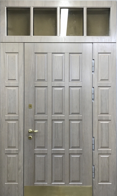 Входная дверь с остекленной фрамугой №1 привлекает внимание благодаря стильному и современному дизайну. Ее внешняя и внутренняя отделка из МДФ выглядит элегантно и долговечно, а также устойчива к механическим повреждениям, таким как царапины и вмятины. Каркас из профильной трубы и металл толщиной 2 мм гарантируют прочность и надежность. Наличие фрамуги позволяет создать эффектное освещение и визуально расширяет пространство, при этом сохранение теплоизоляции обеспечено двумя контурами резинового уплотнителя. Блокираторы и качественные замки, такие как Просам и Мосрентген, надежно защищают от взлома. Возможность дополнить дверь стеклопакетом, зеркалом или коваными элементами делает эту модель еще более универсальной для различных интерьеров. Входная дверь с остекленной фрамугой №1 от производителя: быстрое изготовление и монтаж в Белозерском, индивидуальные размеры, широкий выбор материалов и фурнитуры, официальная гарантия до 10 лет.