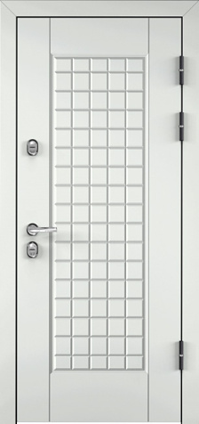 Белая входная дверь МДФ с вырезом "плитка" в центре №532