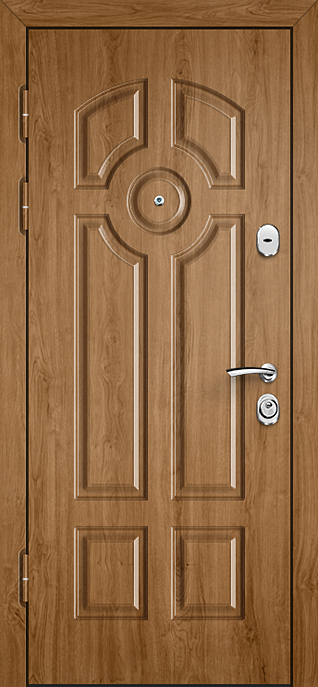 Филёнчатая отделка всегда придаёт дверному полотну особый шарм, создавая эффект глубины и аккуратного рельефа. Входная дверь МДФ с внешней панелью под филёнку №537 универсальна и одинаково хорошо смотрится на фасаде частного дома, в офисе или в квартире. Отделка из МДФ-плиты устойчива к мелким повреждениям, не выгорает и сохраняет аккуратный вид при ежедневной эксплуатации, а при необходимости легко комбинируется с другими декоративными элементами. В основе конструкции — каркас из профильной трубы, лист стали толщиной 2 мм и рёбра жёсткости, обеспечивающие надёжность и жёсткость всей системы. Для удобства и безопасности предусмотрены два замка: сувальдный Просам и цилиндровый Мосрентген. Два контура уплотнения повышают комфорт эксплуатации, а при желании дверь можно дополнить зеркалом, стеклопакетом или коваными вставками, сделав её не только прочной, но и выразительной частью интерьера. Входная дверь МДФ и внешней панелью под филенку №537 от производителя: быстрое изготовление и монтаж в Белозерском, индивидуальные размеры, широкий выбор материалов и фурнитуры, официальная гарантия до 10 лет.