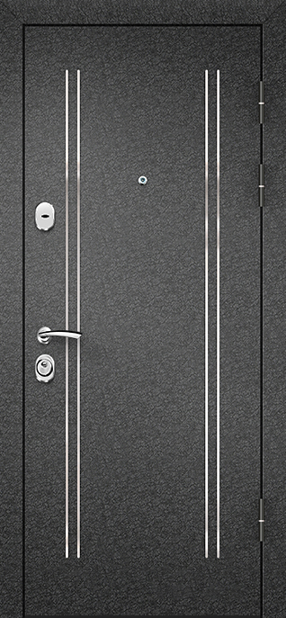 Дверь металлическая в порошке №59 — надежное решение для квартир, офисов и подъездов, где требуется прочная конструкция и аккуратный внешний вид. Снаружи используется молотковое напыление, которое не боится механических повреждений и долго сохраняет насыщенный цвет, а внутренняя поверхность отделана ламинатом, создающим ощущение уюта и подчеркивающим практичность модели. Каркас собран из профильной трубы 50х25 мм, усилен ребрами жесткости и листом стали толщиной 2 мм, что придает двери устойчивость к силовым нагрузкам. Дополнительную защиту обеспечивают два замка: верхний сувальдный «Просам» и нижний цилиндровый «Мосрентген», оба с тремя ригелями. Два контура резинового уплотнения помогают справляться со сквозняками, а при желании дверь можно укомплектовать шумо- и теплоизоляцией. Модель №59 легко адаптируется под любые требования: возможна комбинация отделок, установка зеркала, стеклопакета или декоративной ковки. Дверь металлическая в порошке №59 от производителя: быстрое изготовление и монтаж в Белозерском, индивидуальные размеры, широкий выбор материалов и фурнитуры, официальная гарантия до 10 лет.