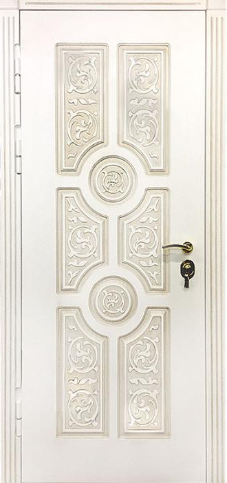 Дверь уличная с терморазрывом №49 — это надежное решение для частных домов и коттеджей, которое обеспечит комфорт и защиту от внешних факторов. С терморазрывом в коробке и полотне, эта дверь исключает проникновение холода, сохраняя тепло в доме и предотвращая появление конденсата. Внешняя и внутренняя отделка выполнена с использованием накладки МДФ, что придает двери привлекательный вид и долговечность, стойкость к механическим повреждениям и атмосферным воздействиям. Ковка, как элемент декора, добавляет изысканности и подчеркивает индивидуальность. Металлическая конструкция с толщиной полотна 1,5 мм и каркасом из профильных труб гарантирует прочность и устойчивость. Уплотнение с тремя контурами магнитного герметика и высокая шумо- и теплоизоляция на основе пенопласта делают дверь идеальной для использования в уличных условиях. Возможность замены замков и добавления стеклопакетов или кованых элементов позволяет индивидуализировать дверное решение под любые потребности. Дверь уличная с терморазрывом №49 от производителя: быстрое изготовление и монтаж в Белозерском, индивидуальные размеры, широкий выбор материалов и фурнитуры, официальная гарантия до 10 лет.