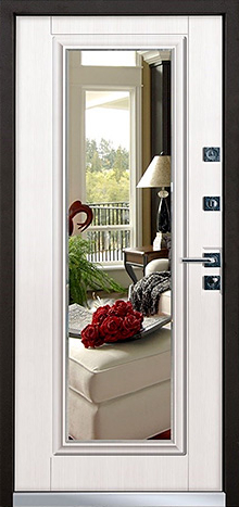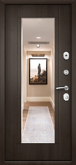 Входная дверь с зеркалом внутри №71 удачно сочетает практичность и надежность, оставаясь при этом стильным элементом интерьера. Она подходит для квартиры, офиса или частного дома, создавая удобство в быту и подчеркивая статус владельца. Внешняя сторона покрыта порошковой окраской, устойчивой к царапинам и перепадам температуры, что гарантирует долговечность и сохранение привлекательного вида. Внутри установлена накладка из МДФ, которая придает поверхности уют и делает её гармоничной частью интерьера. Зеркало на внутренней стороне экономит пространство прихожей и добавляет ей визуальной глубины. Каркас из профильной трубы с листом стали толщиной 2 мм и ребрами жесткости обеспечивает прочность и устойчивость ко взлому. Два контура уплотнителей создают дополнительную защиту от сквозняков и пыли, а терморазрыв в коробке и полотне предотвращает промерзание зимой. Для безопасности предусмотрены два замка российского производства с ригельными системами, при желании возможна замена на замки премиальных марок или установка умных электронных решений. Дверь входная с зеркалом внутри №71 от производителя: быстрое изготовление и монтаж в Белозерском, индивидуальные размеры, широкий выбор материалов и фурнитуры, официальная гарантия до 10 лет.