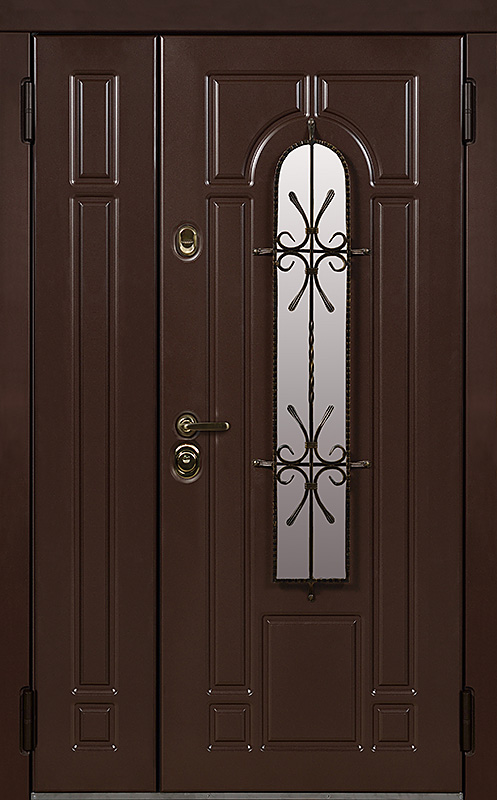 Эта металлическая двухстворчатая дверь с арочным стеклопакетом №15 представляет собой идеальный баланс между эстетикой и прочностью. Арочное стекло добавляет в её дизайн утончённость, а ковка в декоре придаёт изысканный, но в то же время крепкий и надёжный вид. Плита МДФ, используемая как для внешней, так и для внутренней отделки, не только сохраняет прекрасный внешний вид, но и устойчива к механическим повреждениям. Металлическая двухстворчатая дверь с арочным стеклопакетом №15 от производителя: быстрое изготовление и монтаж в Белозерском, индивидуальные размеры, широкий выбор материалов и фурнитуры, официальная гарантия до 10 лет.