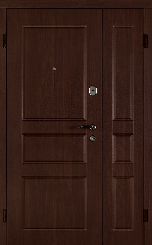 Коричневая входная полуторная дверь с филенчатой створкой №4 – это надежное и стильное решение для вашего дома или офиса. Внешняя и внутренняя отделка из МДФ с ПВХ обеспечивает долговечность и устойчивость к повреждениям, сохраняя при этом элегантный внешний вид. Прочные материалы конструкции, такие как профильная труба 50х25 мм и лист металла толщиной 2 мм, гарантируют стабильность и безопасность. Ребра жесткости из профильных труб 40х25 мм усиливают дверное полотно, а уплотнение с двумя контурами надежно защищает от внешних факторов. Несмотря на отсутствие терморазрыва, в двери реализованы терморазрывы в коробке и полотне, что помогает улучшить теплоизоляцию. Возможность выбора дополнительных опций, таких как шумоизоляция, делает эту дверь универсальной для различных условий эксплуатации. Коричневая входная полуторная дверь с филенчатой створкой №4 от производителя: быстрое изготовление и монтаж в Белозерском, индивидуальные размеры, широкий выбор материалов и фурнитуры, официальная гарантия до 10 лет.