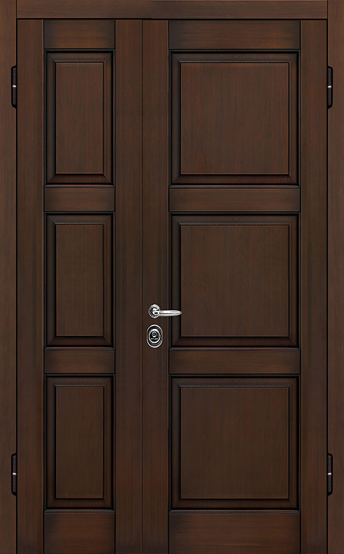 Двойная филенчатая дверь для загородного дома венге №7 сочетает в себе элегантность и прочность. Ее внешняя отделка выполнена из панелей МДФ с ПВХ, что придает двери современный вид, а также обеспечивает устойчивость к механическим повреждениям и долговечность. Каркас из профильной трубы 50х25 мм и полотно толщиной 2 мм гарантируют надежность и устойчивость к нагрузкам. Ребра жесткости из профильных труб 40х25 мм усиливают конструкцию, а уплотнение с двумя контурами защищает от проникновения влаги и пыли. Замки "Просам" и "Мосрентген" с тремя ригелями обеспечивают высокий уровень безопасности. В дверь можно добавить дополнительные элементы, такие как стеклопакет, зеркало или кованые детали, что позволяет адаптировать ее под любой интерьер. Терморазрывы в коробке и полотне способствуют лучшей теплоизоляции, обеспечивая комфорт в любое время года. Двойная филенчатая дверь для загородного дома венге №7 от производителя: быстрое изготовление и монтаж в Белозерском, индивидуальные размеры, широкий выбор материалов и фурнитуры, официальная гарантия до 10 лет.