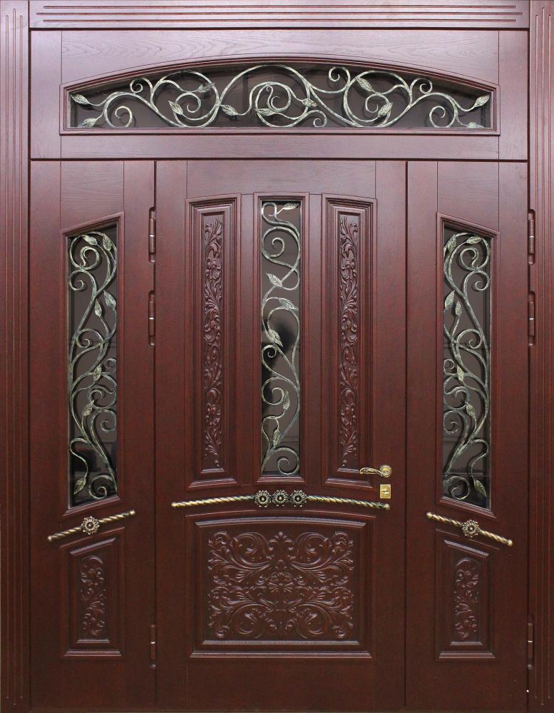 Большая входная дверь в частный дом со стеклом №328 создана для тех, кто ценит солидность и выразительный облик парадного входа. Широкое полотно на основе стальной конструкции с профилем 50х25 мм и листом металла толщиной 2 мм обеспечивает надежность и устойчивость к нагрузкам, а массив дуба в отделке придает дверному блоку статусный вид и долговечность. Натуральное дерево отличается стойкостью к повреждениям и долго сохраняет свой первозданный оттенок, что особенно важно для фасадных решений. Вставка из стекла добавляет естественного света в холл и делает интерьер более гостеприимным. Двойной контур резинового уплотнителя защищает от сквозняков, а наличие блокираторов повышает уровень безопасности. Такая дверь гармонично смотрится в коттеджах и частных домах, где парадный вход становится главным акцентом архитектуры. Большая входная дверь в частный дом со стеклом №328 от производителя: быстрое изготовление и монтаж в Белозерском, индивидуальные размеры, широкий выбор материалов и фурнитуры, официальная гарантия до 10 лет.
