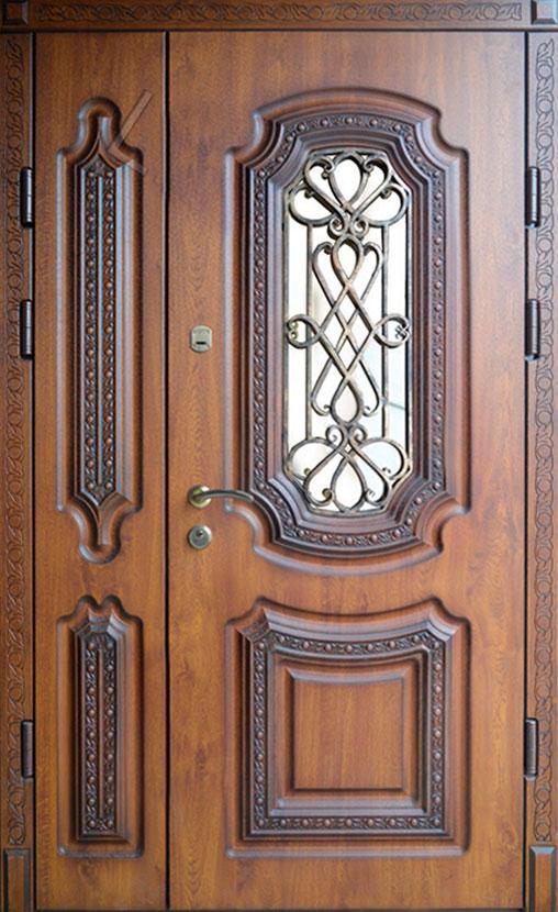 Красивая шпонированная дверь с надежной фурнитурой и ковкой "лоза" №33